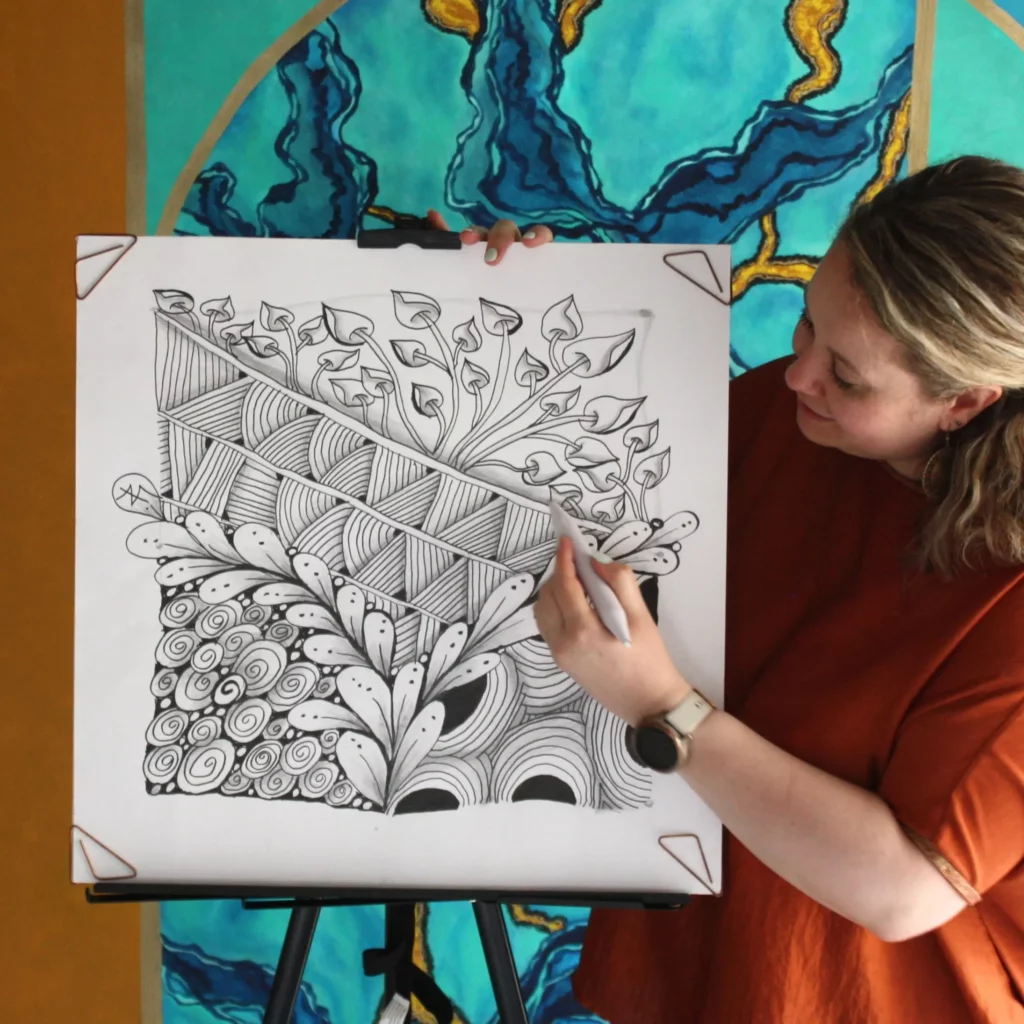 - Aider les personnes, cette fois grâce au dessin : Le Zentangle est un outil puissant pour la gestion du stress, l’amélioration de la concentration et la reconnexion à soi. C’est une manière douce et accessible pour lâcher prise.